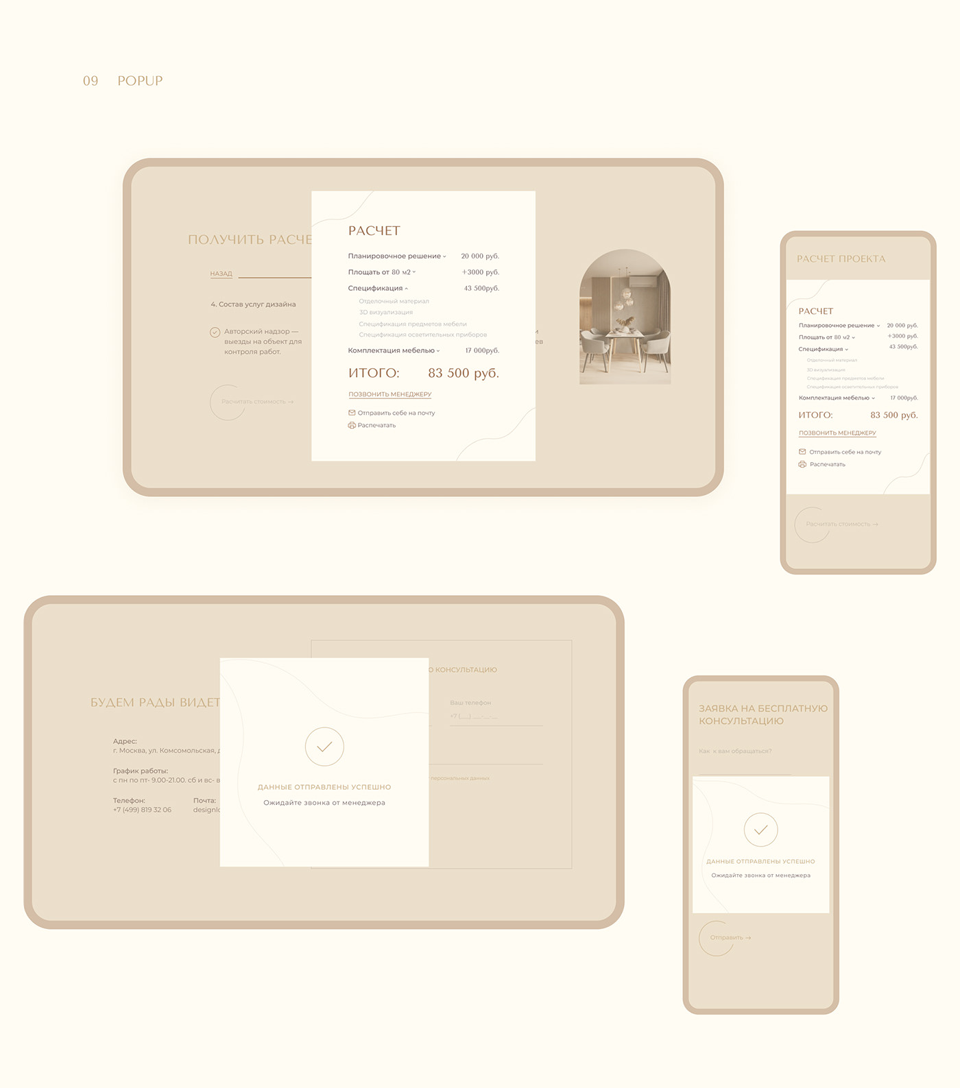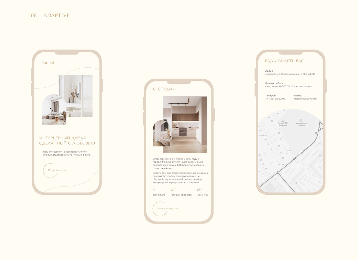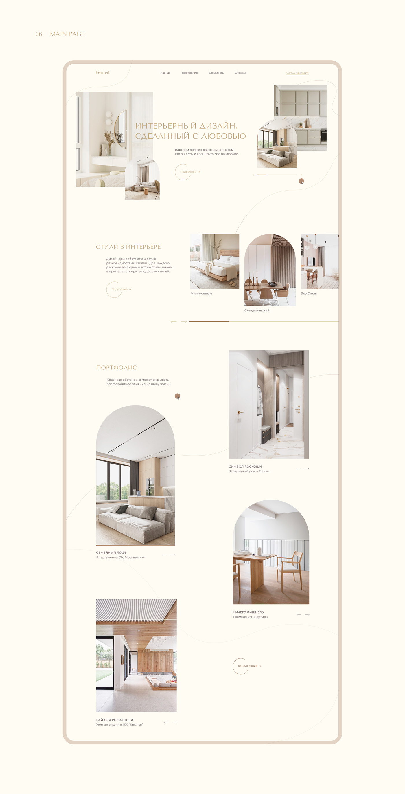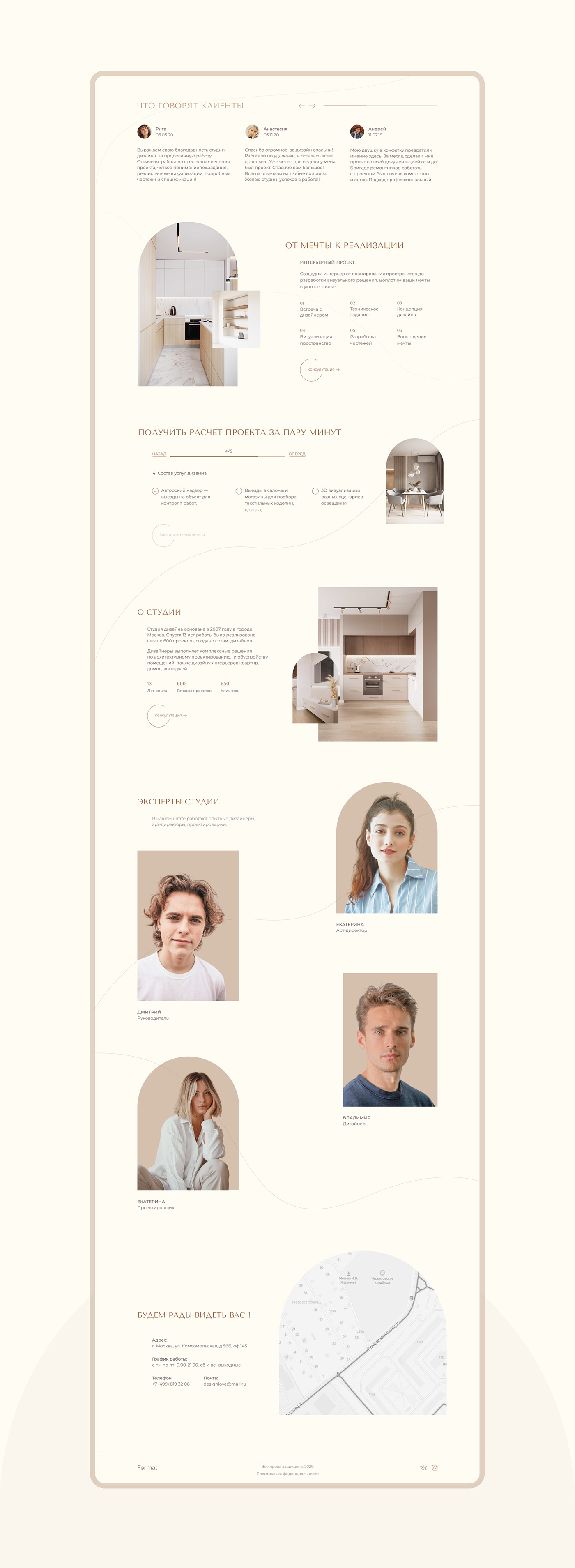 Landing page for interior studio design