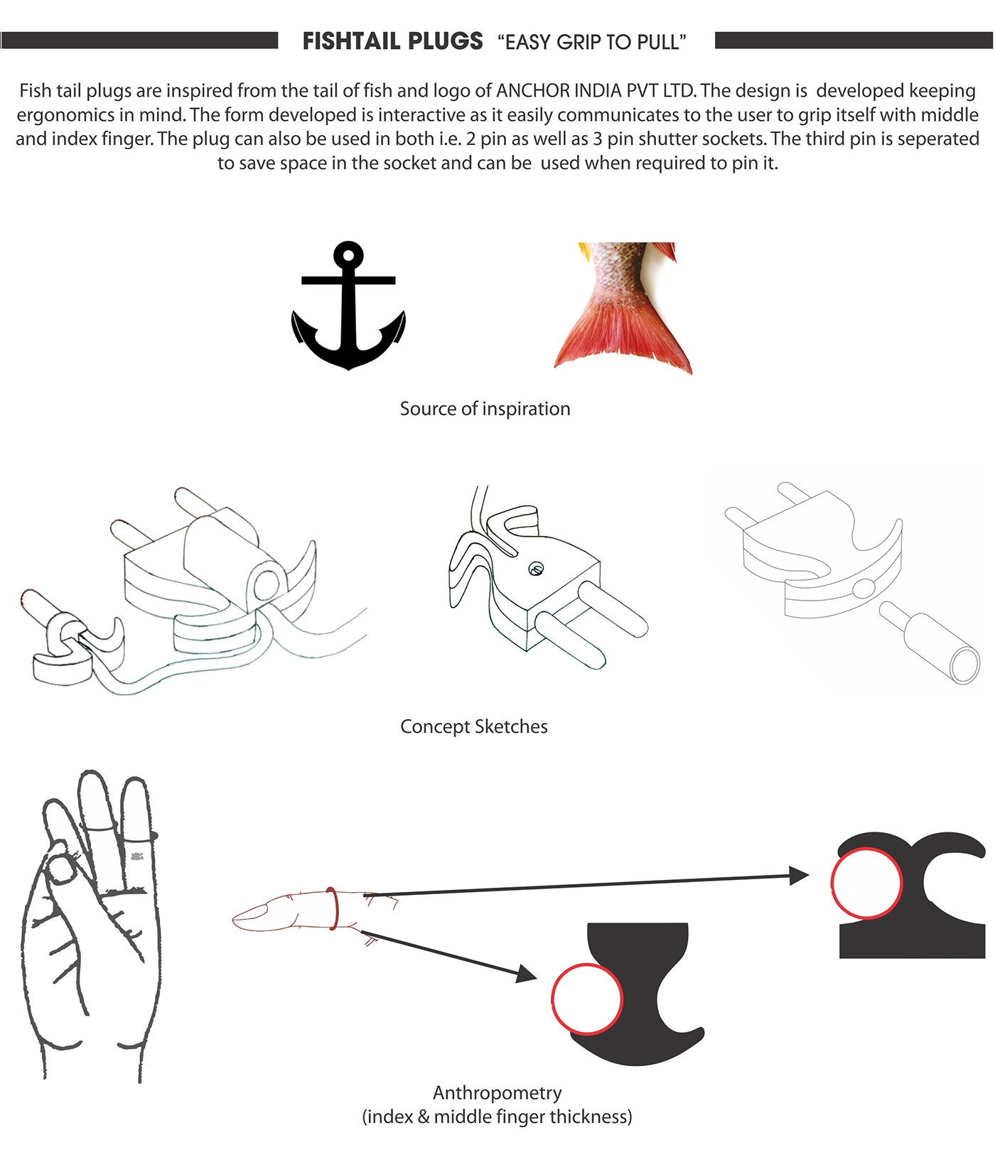 Design of an Ergonomic plug "FISHTAIL PLUGS"
