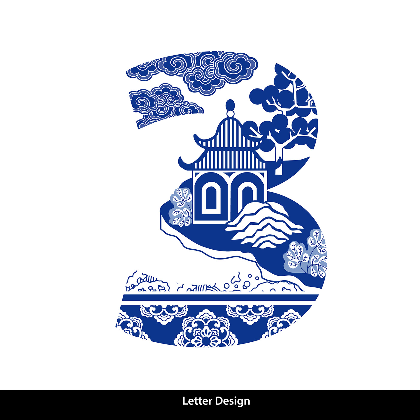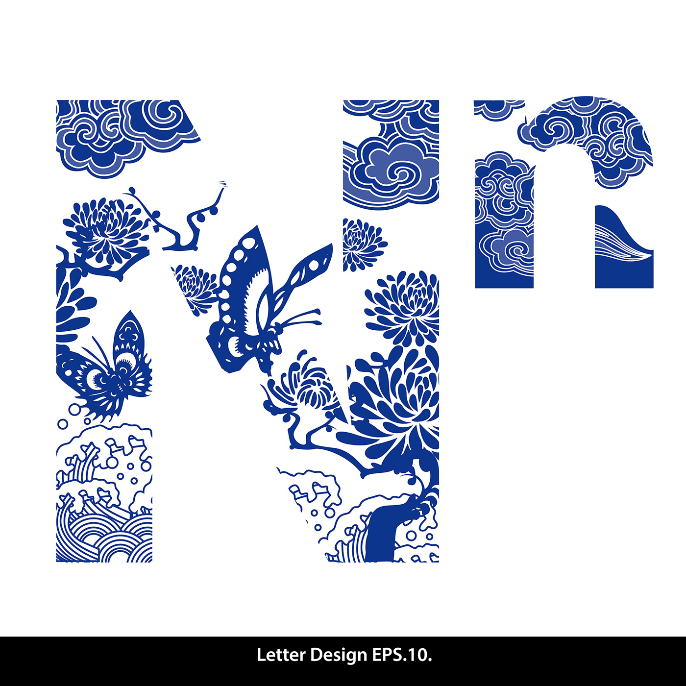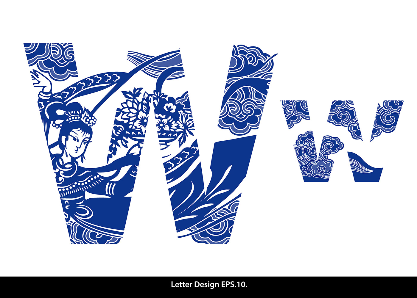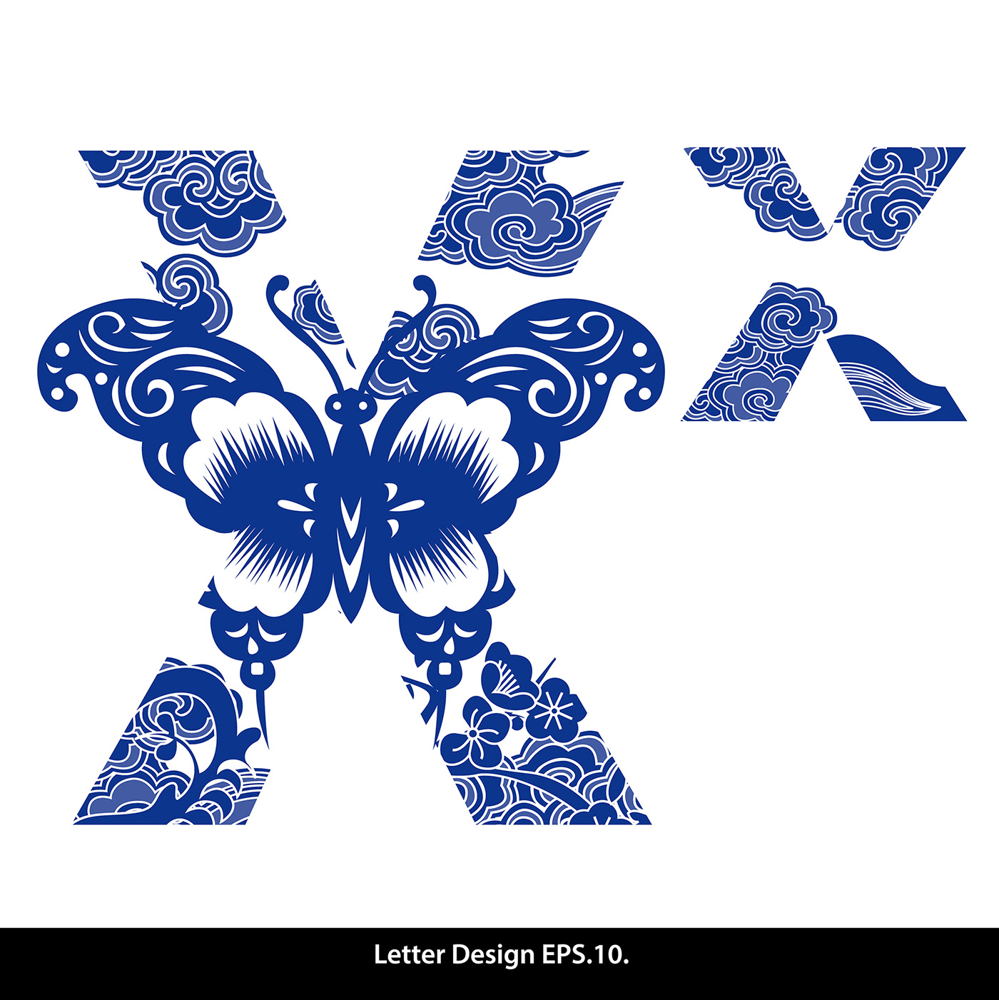 Traditional Oriental Chinese style. Alphabet a to z