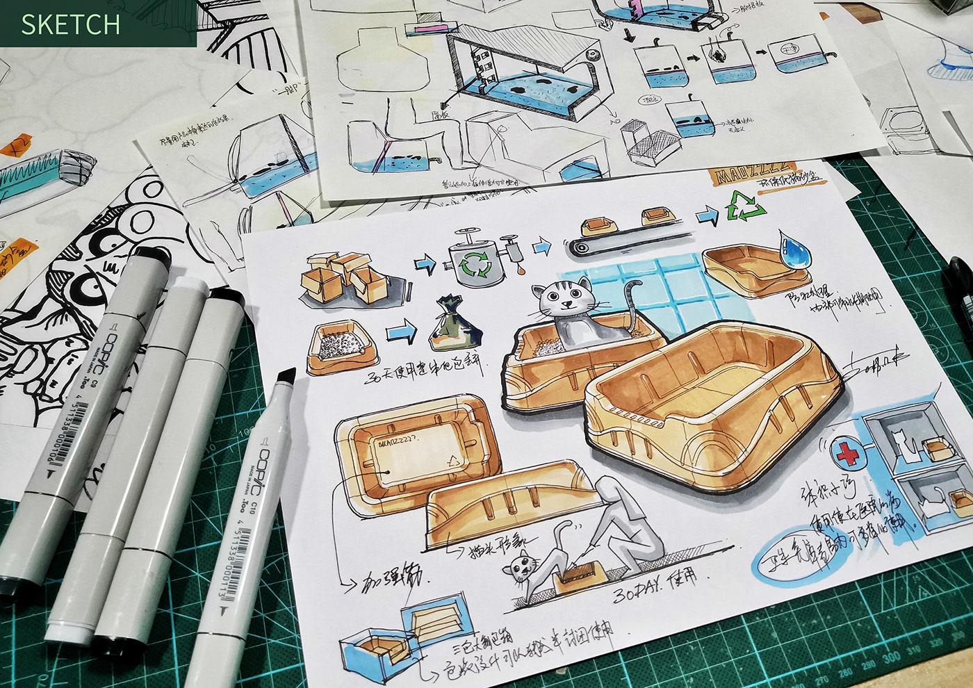 Recycled and degraded cat litter box