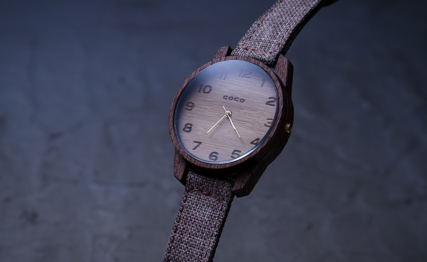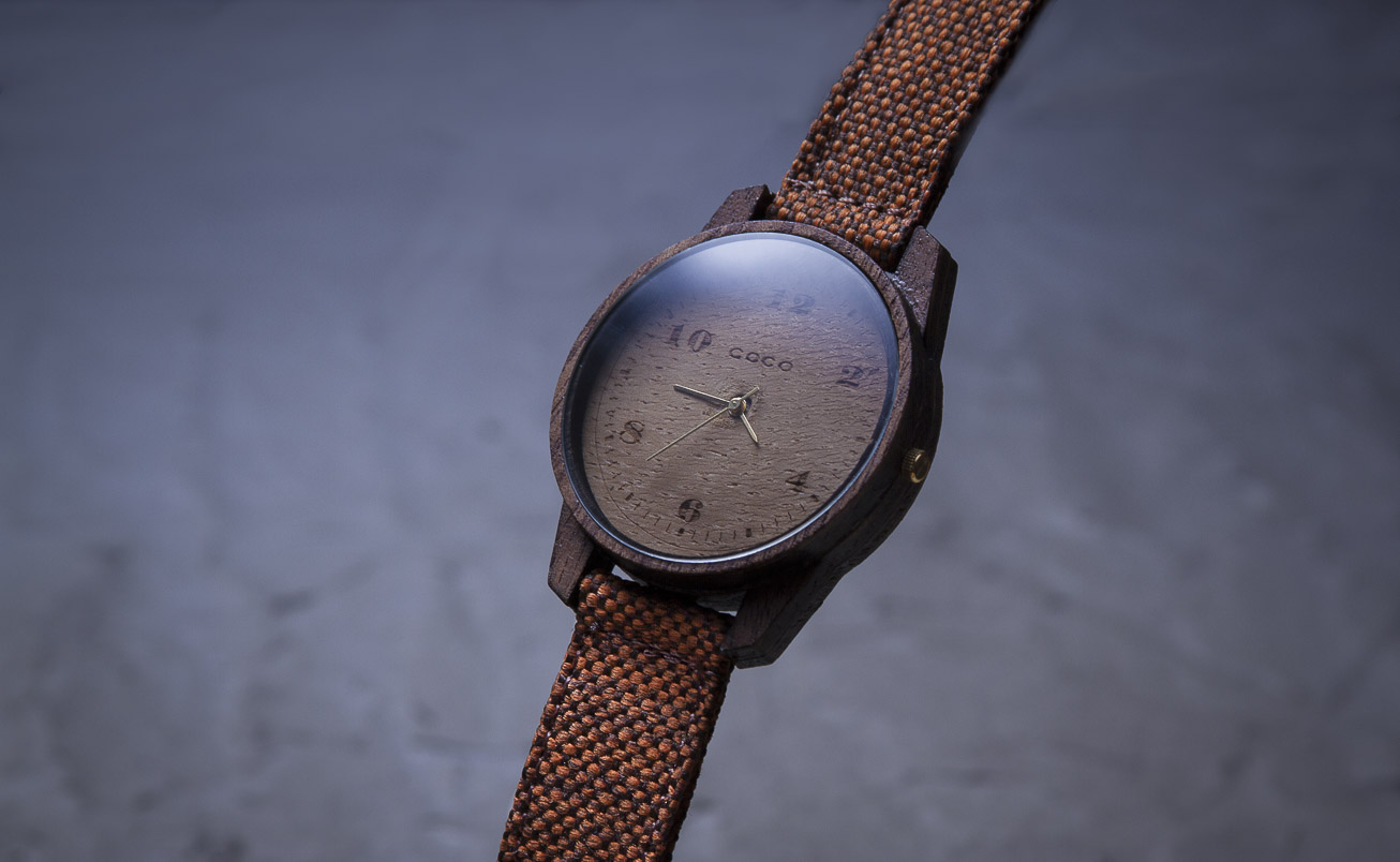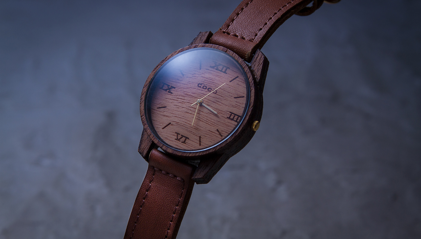 wood watch product shot