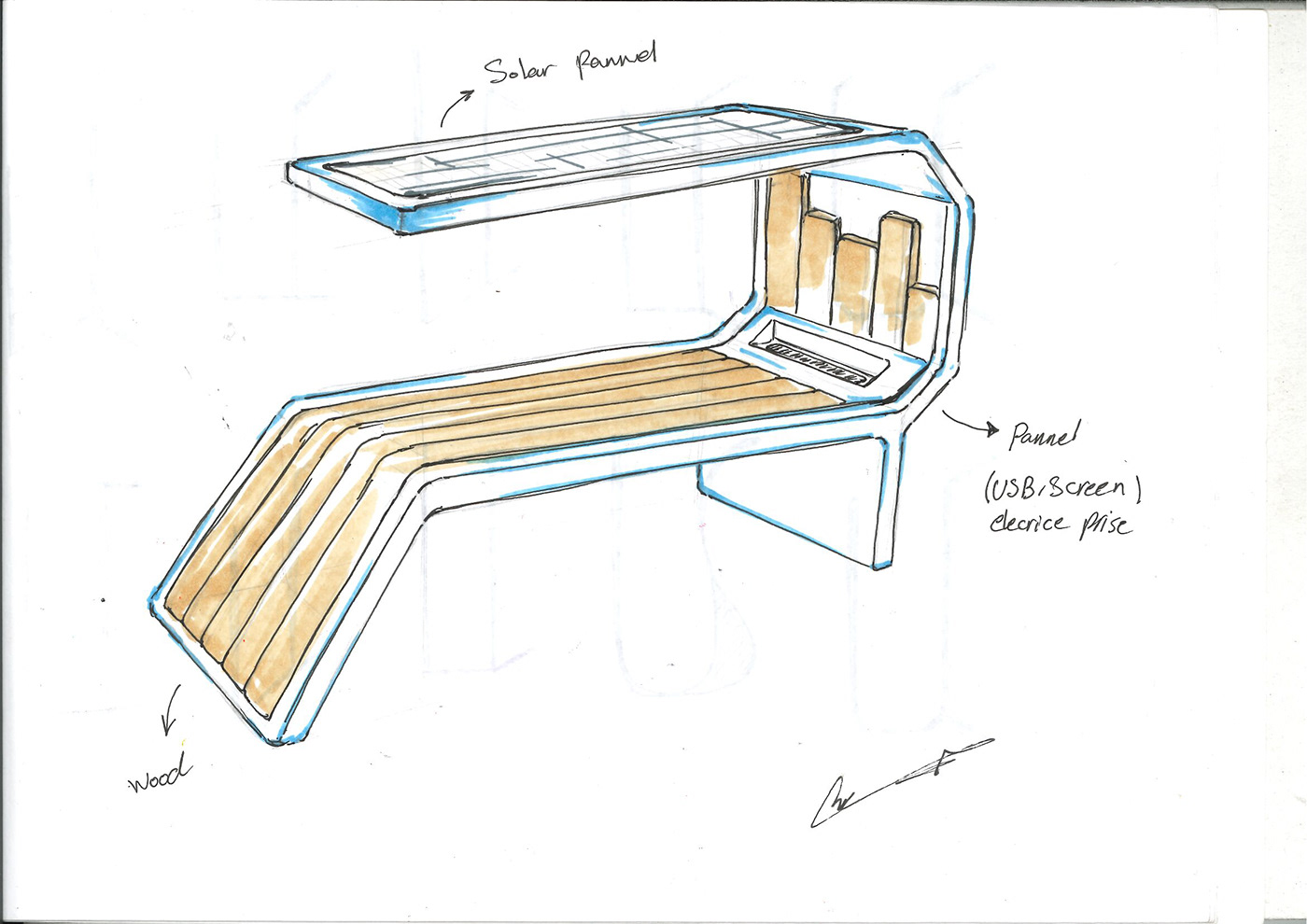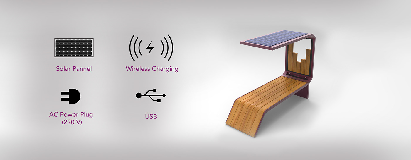 Public Bench - Design integrating solar panel